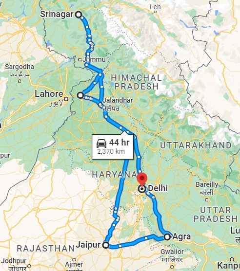 - 1 Domestic Economy Return flight from Jaipur - Srinagar (per person)
